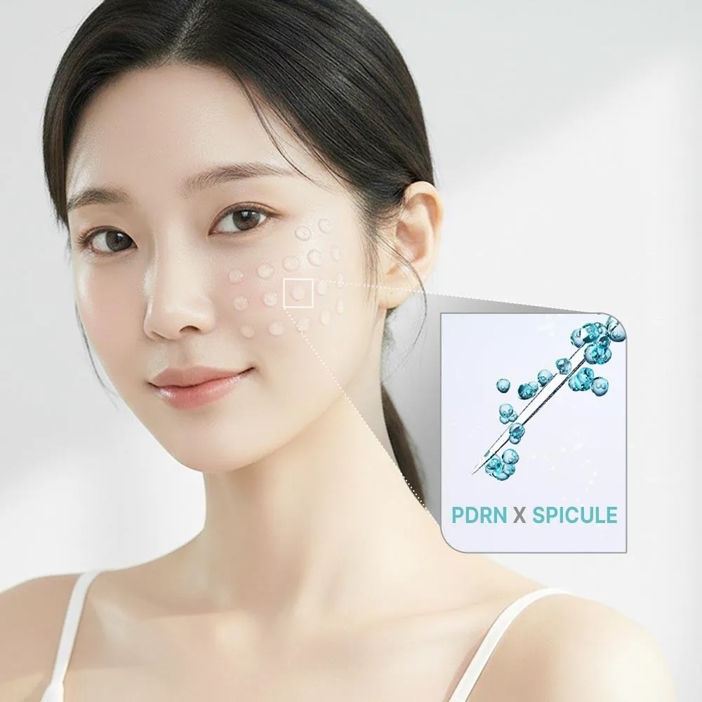 A next-generation skincare solution formulated with 1,500 ppm high-purity PDRN and refined microscopic spicules —designed to help active ingredients interact more effectively beyond the skin’s surface. Not just a spicule cream. A delivery system created to guide PDRN where it matters.